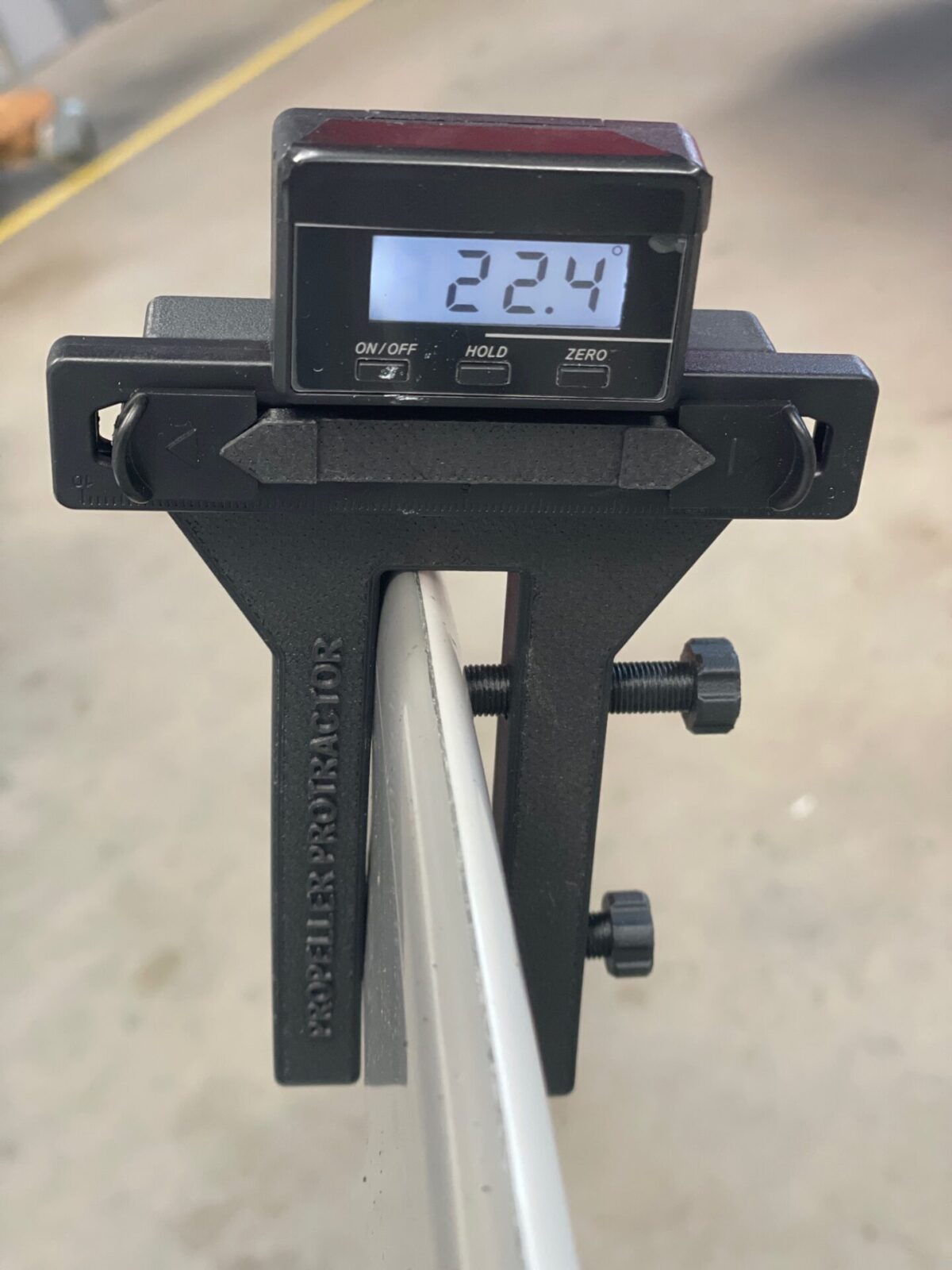 Buy digital protractor for propeller adjustment.