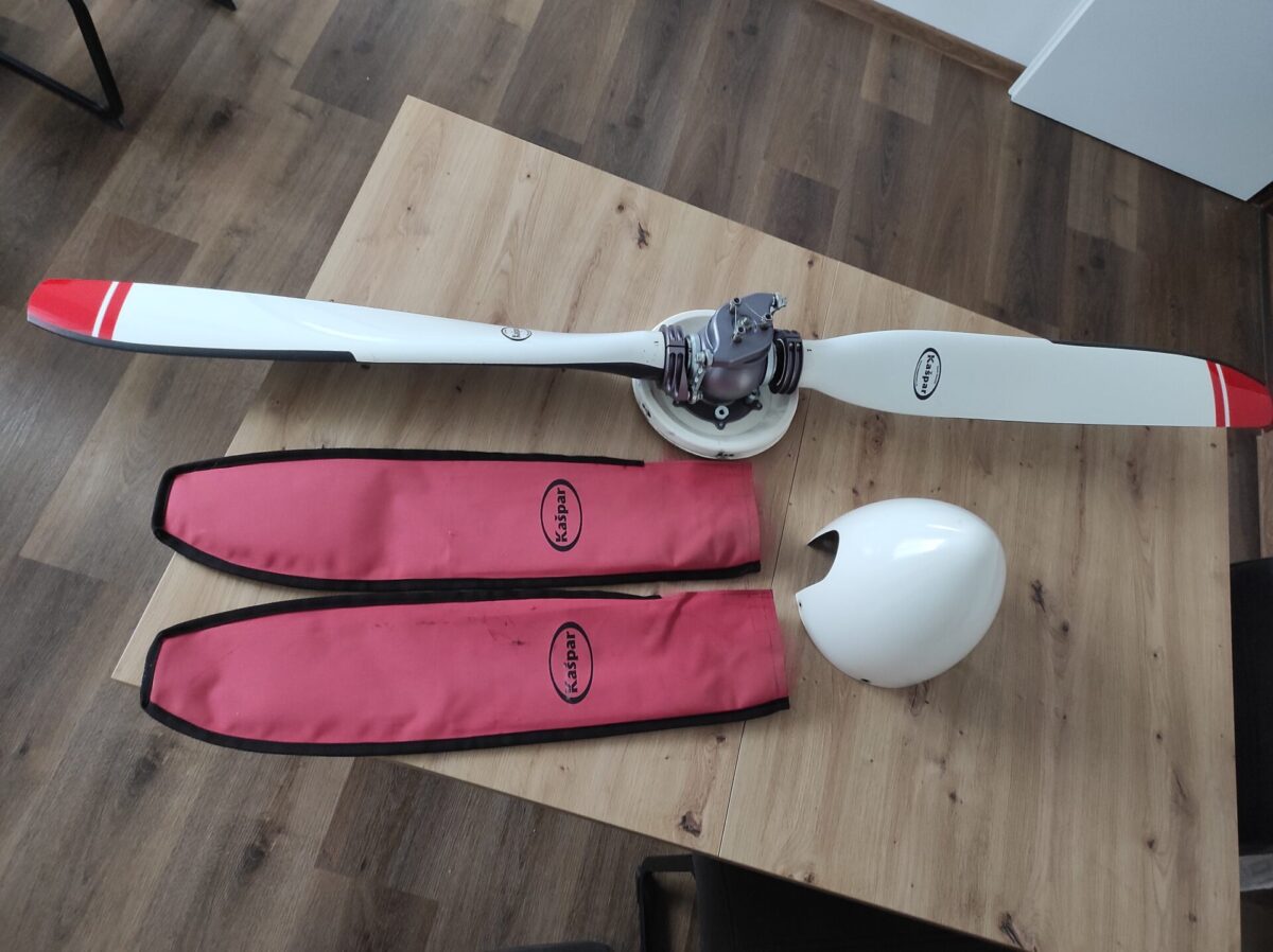 I am selling a mechanically adjustable Kašpar KA-4/2-PA propeller, including the control mechanism and cone. Diameter 1700 mm, suitable for Rotax 912 engines. The propeller has undergone a complete service and adjustment by the manufacturer after 500 hours of operation.