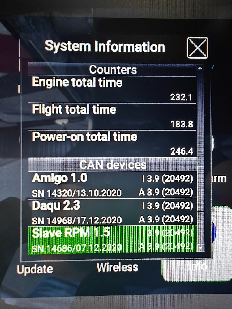 aircraft flight log book, engine log book, strobo, beacon, landing light, fuel valve, backup fuel pump, hydraulic brakes, autopilot, electric trom, heating
