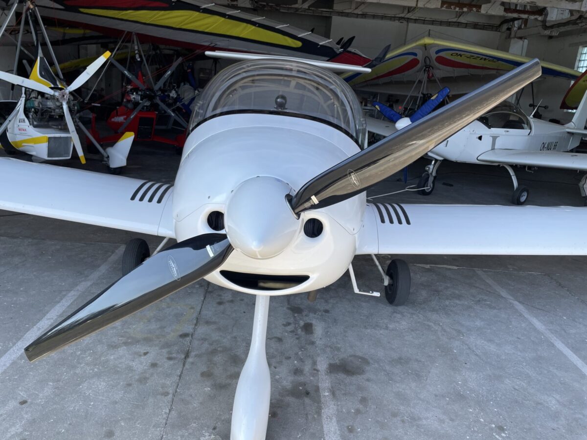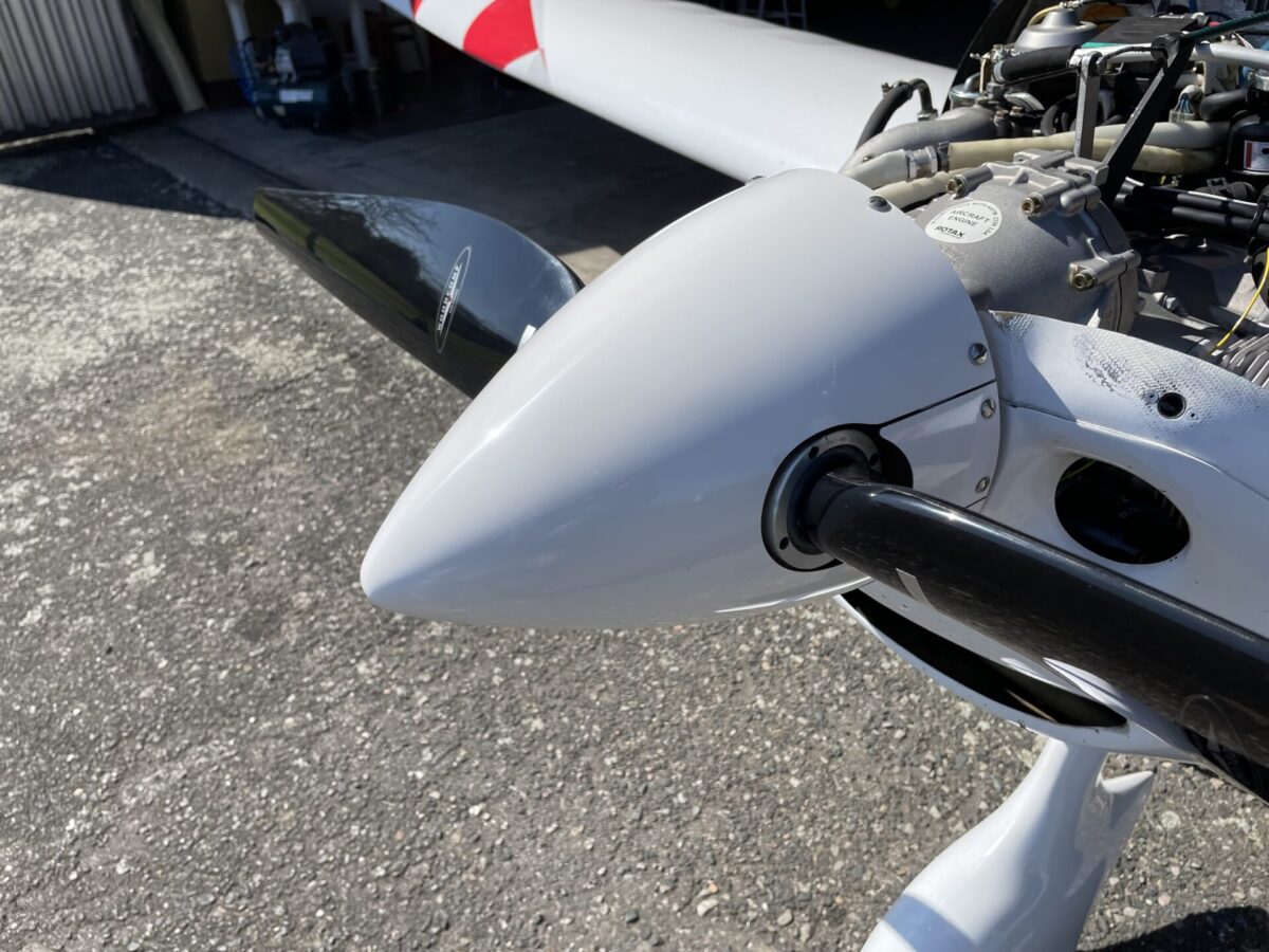 Za letu mechanicky stavitelná, kompozitová, dvoulistá vrtule po generální opravě.